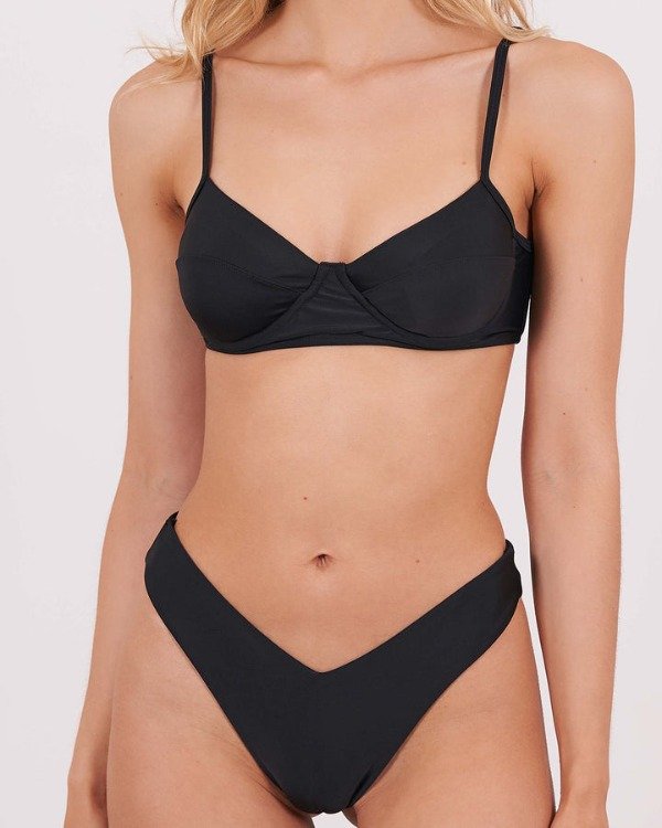 Corpiño con aros, base y breteles chatos regulables. Broche metálico en la espalda. Incluye tazas desmontables.
