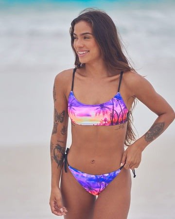 Bombacha con tiras chatas lateras para anudar. Opción vedetina a elección.